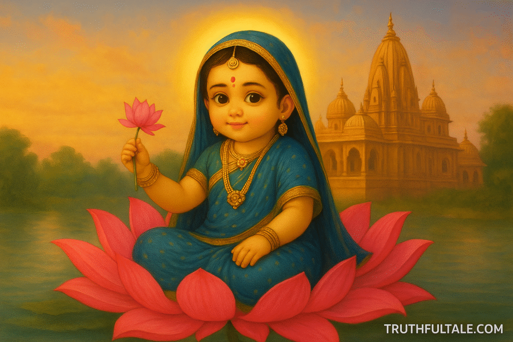 The story of Radha Rani’s appearance in a lotus flower is among the most popular myths. Vrishabhanu Ji, while bathing in a pond, saw a glowing lotus with a divine baby girl inside it. This miraculous sight convinced him that she was no ordinary child. She was brought home and raised with love, unaware that she was the Goddess of devotion herself.