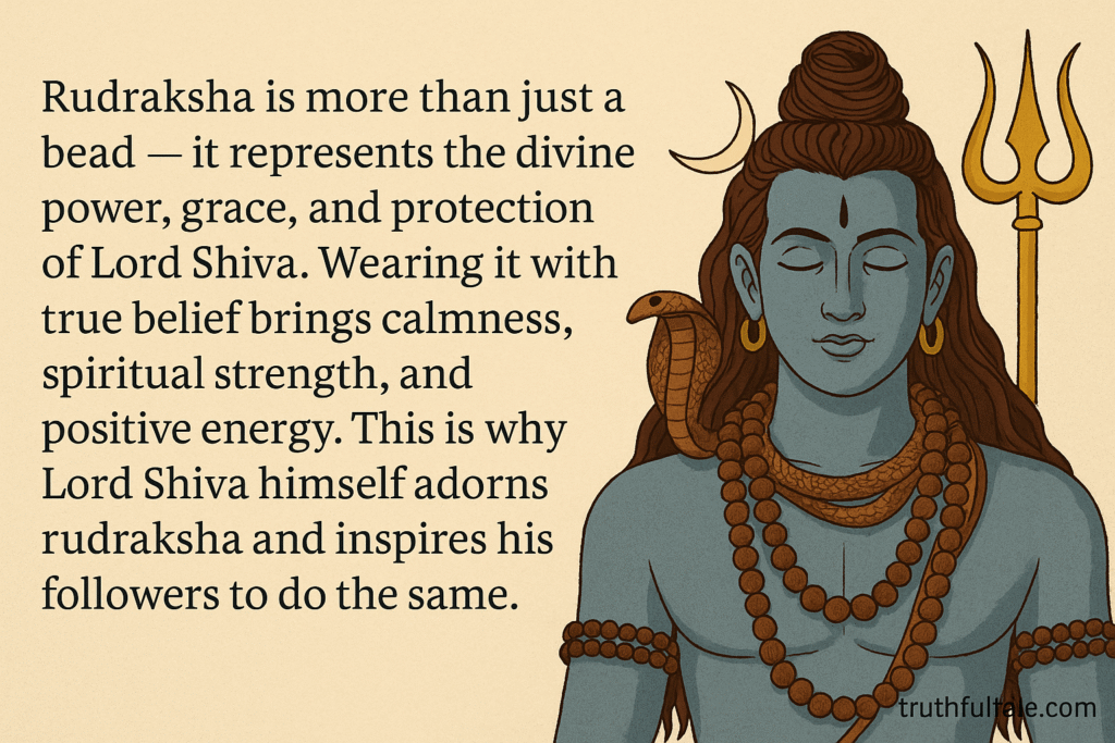 Shiva himself is always shown wearing Rudraksha mala (garlands) on his arms, neck, and hair — symbolizing power, protection, and purity.